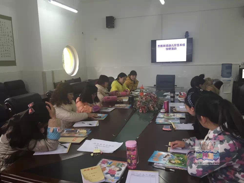 3月6日上午在郭玉霞副园长和教研组长何珩、郭艳的组织下,惠民双语幼儿园艺术组全体成员在会议室开展了新学期第一次教研活动。