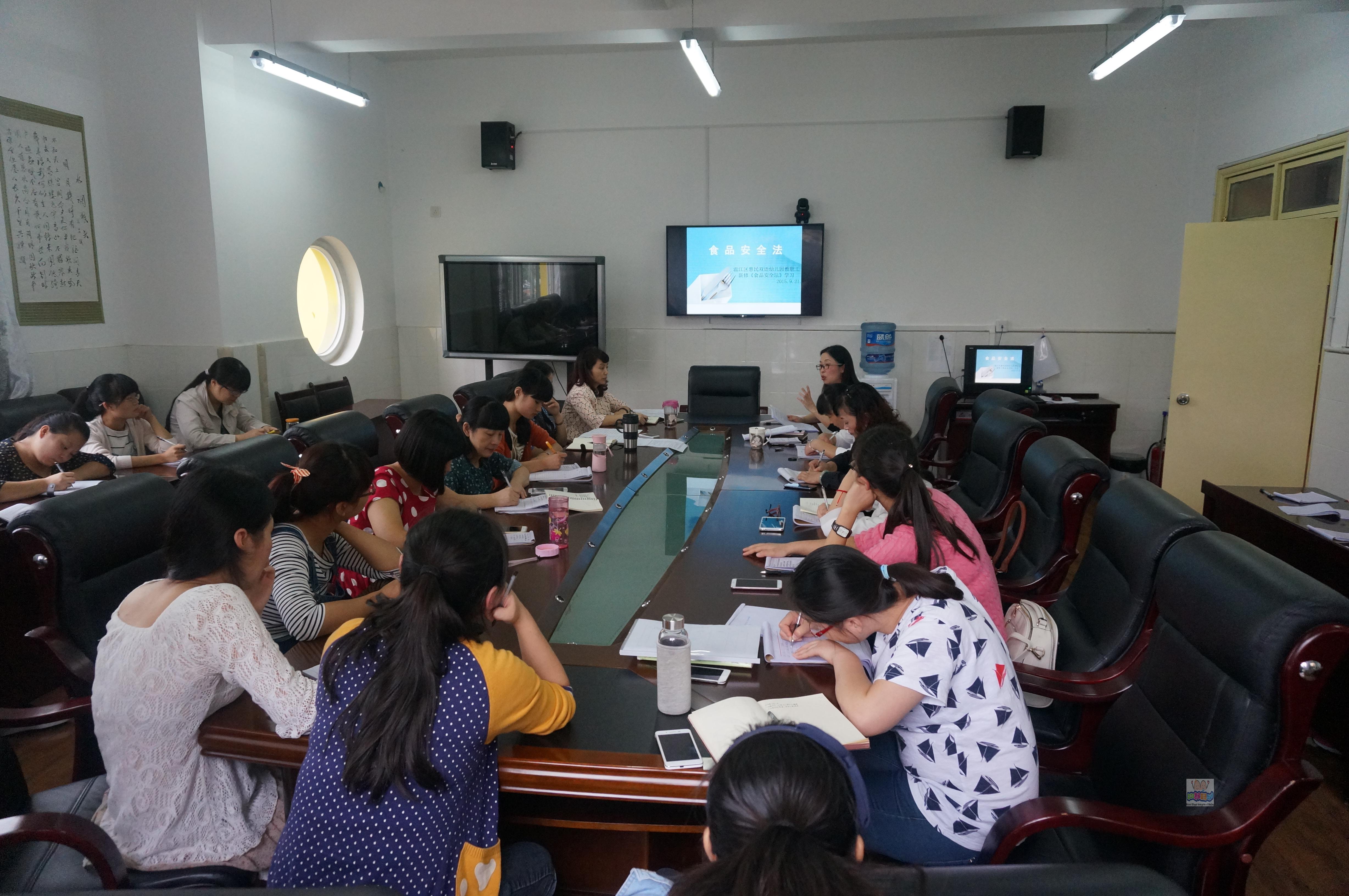 为让惠幼全体教职员工知晓新修《食品安全法》,提高全员安全意识,惠民幼儿园组织全体教师及厨房工作人员分别于9月22日下午4::30和9月24日中午1:30认真学习了史上最严的《食品安全法》。干园长通过新旧安全法的对比,用十个亮点和四个关键词(即1.制度构建2.重典治乱3.社会公治4.互联网交易)详细解读了新《食品安全法》,帮助全体教职员工深入浅出地了解了《新食品安全法》传递的新信息。