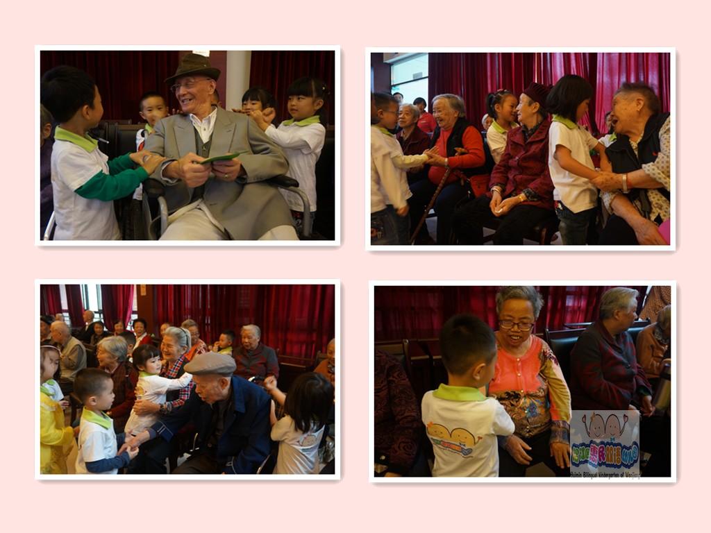 为了弘扬民族文化,传播尊老风尚,引起社会对老人的广泛关注与关爱,2015年10月20日上午,温江区惠民双语幼儿园大班组开展了“浓浓敬老情,情暖老人心”的重阳节主题活动。