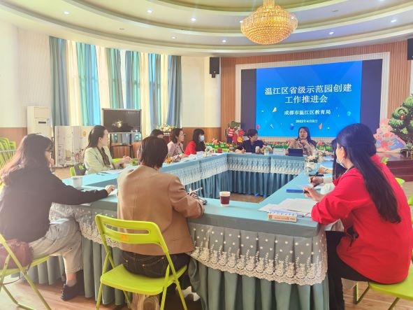 为全面推进温江区省级示范园的创建工作,实现幼儿园的区域型示范性引领,促进温江区学前教育的高质量发展,2022年4月8日,温江区省级示范园创建工作推进会在惠民双语幼儿园举行。温江区学前教育政府督学肖蕾、学前教育科科长张桃及相关工作人员、申报创建省级示范园的园长参加了此次会议。